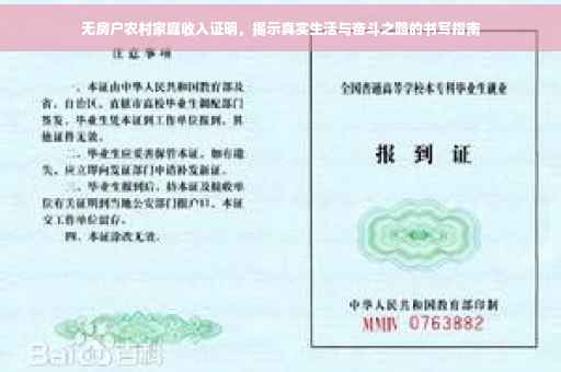 随着社会的快速发展,越来越多的人开始关注农村家庭的生活状况,尤其是那些被称为“无房户”的家庭,他们虽然面临着诸多困难,但依然努力追求生活的美好,本文将详细介绍无房户农村家庭收入证明的重要性、作用,以及办理流程和注意事项,同时分享一些成功案例和收入来源,旨在帮助更多人了解这一群体的真实生活与奋斗之路。
