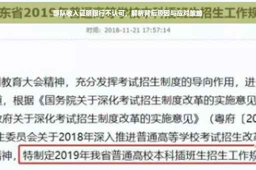 近年来,随着社会的快速发展,越来越多的人选择投身军旅,为国家和人民奉献青春,在部队服役的官兵们有时会遇到一些实际问题,如部队收入证明银行不认可等,这一现象引发了广泛关注,本文将深入探讨背后的原因,并对此进行解析。