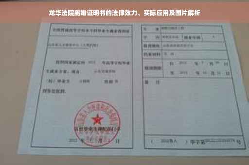 摘要:本文以龙华法院为例,探讨了离婚证明书的法律效力和实际应用。离婚证明书作为法律文件,具有证明离婚事实的法律效力,在财产分割、子女抚养等方面具有实际应用价值。本文还附上了龙华法院离婚证明书图片,以便读者更好地了解离婚证明书的外观和内容。