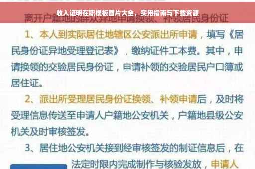 摘要:本指南提供收入证明在职模板图片大全,包括多种模板样式供用户下载使用。这份指南详细说明了如何填写收入证明表格,包括填写要点和注意事项。用户可以通过本指南轻松获取收入证明在职模板,并了解如何正确填写相关信息,从而顺利办理贷款、信用卡等金融业务。