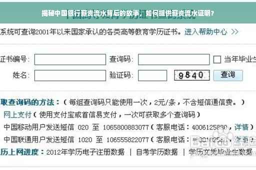 摘要:本文将揭示中国银行薪资流水的背后故事,包括薪资流水的含义、作用以及注意事项。将详细介绍如何提供中国银行薪资流水证明,包括线上和线下查询、打印流程等。让读者了解这一过程,以便在需要时能够顺利提供证明。文章内容旨在帮助公众更加清晰地了解银行薪资流水的重要性及获取方法。