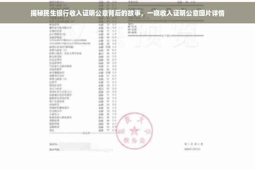 当今社会,银行作为金融机构的核心组成部分,其业务涉及民众生活的方方面面,收入证明作为银行出具的关键文件,对于个人信用评估、贷款申请等具有至关重要的作用,本文将带您深入了解民生银行收入证明公章背后的故事,揭开这一简单文件背后所蕴含的不简单之处。