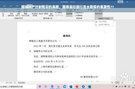 近年来,随着社会的进步和人们观念的开放,离婚现象逐渐增多,在离婚过程中,财产分割是至关重要的一环,银行流水明细作为证明个人财产状况的重要证据,越来越受到重视,本文将深入探讨离婚时银行流水明细的作用及背后的真相,帮助大家更好地了解这一话题。