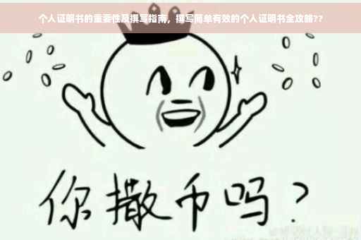 在当今社会,个人证明书在我们的日常生活和工作中扮演着至关重要的角色,无论是办理证件、申请工作、参与活动还是其他场合,一份合格的个人证明书都能为我们提供极大的便利,本文将详细介绍个人证明书的作用、撰写要点及注意事项,帮助大家轻松完成一份具有实效性的个人证明书。