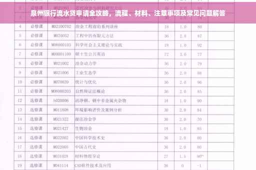 随着金融行业的快速发展,越来越多的人开始关注个人信用贷款,作为福建省内知名的银行之一,泉州银行推出的流水贷产品备受关注,本文将详细介绍泉州银行流水贷的申请流程、所需材料、注意事项以及常见问题解答,帮助申请人顺利申请贷款。