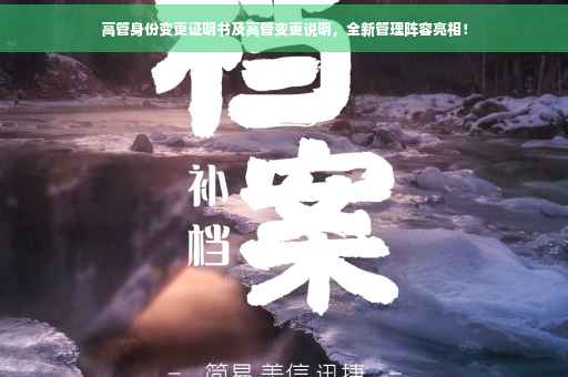 本次高管身份变更证明书旨在说明公司高层管理层变动的事实和合法性,公司深知高管团队的重要性,始终致力于优化管理结构,提高运营效率,在新的领导下,公司将继续秉持诚信、创新、务实、卓越的经营理念,不断开拓进取,为实现可持续发展和股东价值最大化而努力,这一变革是公司在发展过程中必经的阶段,公司对新任高管团队充满信心,相信他们将为公司的未来发展作出重要贡献。