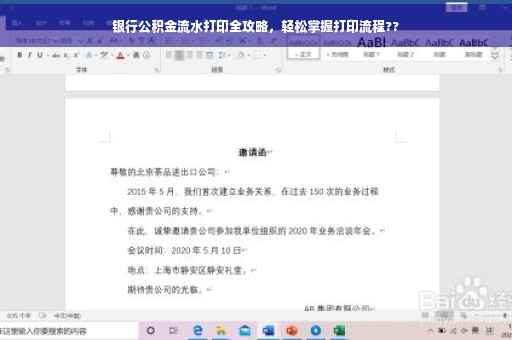 在日常生活中,我们经常会遇到需要提供银行公积金流水证明的情况,例如在申请贷款、办理信用卡、出国签证等场合,了解如何正确打印银行公积金流水,不仅能帮助我们高效处理事务,还能保障个人信息和资金安全,本文将详细介绍银行公积金流水打印的步骤和注意事项。