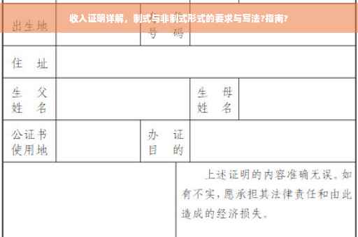 在日益重视个人信用的今天,一张规范有效的收入证明对于个人发展至关重要,希望本文能对您了解收入证明的制式与要求有所帮助,为您的生活和工作提供便利。