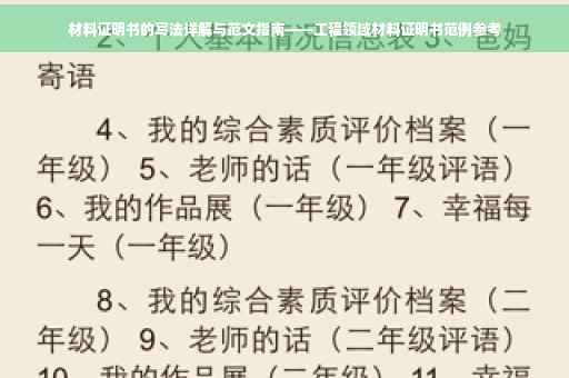 本文旨在为读者提供材料证明书的写作指南和参考范文,帮助大家更好地了解和掌握材料证明书的撰写技巧,通过学习和实践,读者可以逐渐提高写作水平,更好地完成各种材料证明书的写作任务。