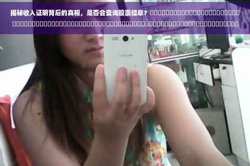 在当今社会,随着金融市场的日益繁荣,股票投资已成为许多人增加财富的重要途径,当涉及到一些重要事务,如开具收入证明时,很多人会疑惑:收入证明会查股票吗?本文将围绕这一问题展开探讨,带您了解背后的真相。