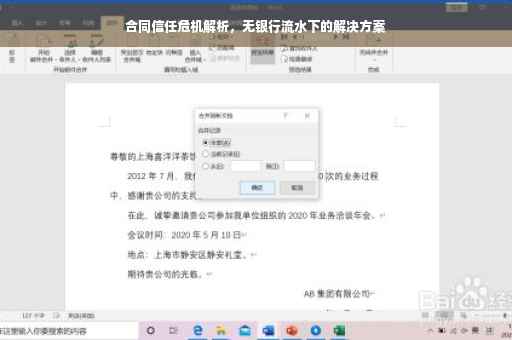 在当今社会,随着经济的发展,合同成为了商业交易中不可或缺的一环,在实际操作中,有时会出现只有合同而没有银行流水的情况,这种现象背后隐藏着信任危机和风险隐患,本文将探讨这一现象的背后原因、影响,以及提出相应的解决方案。