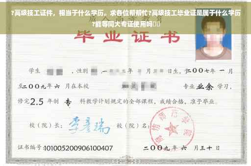高级技工毕业证不属于学历,只是一个职称证,表示你已经取得高级技工的任职资格,单位可以聘任你为高级技工。高级技工毕业证不能等同大专毕业证使用。大专毕业证是学历证书,表示你具备大专学历,你如果参加工作,学历就是大专。不能把职称证与学历证混淆。