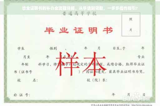 摘要:毕业证明书的补办流程详解,全程指导操作。从申请开始,包括填写申请表格、提交相关证明材料、学校审核、缴纳补办费用等环节。审核通过后,按照学校通知领取新的毕业证明书。全程详细解析每一步操作,帮助毕业生顺利补办毕业证明书。