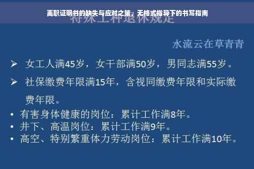 在现代职场中,离职证明书已经成为一种证明员工离职信息的重要文件,它不仅对于离职员工有着极大的意义,同时也对新雇主在招聘过程中起到了至关重要的作用,离职证明书能够证明员工的离职时间、工作岗位、工作表现等信息,有助于新雇主更好地了解应聘者的职业背景,有些公司未能提供规范的离职证明书,给离职员工和新雇主带来诸多困扰,本文将详细探讨离职证明书的缺失问题及其对个人和公司的影响,以及应对之策。