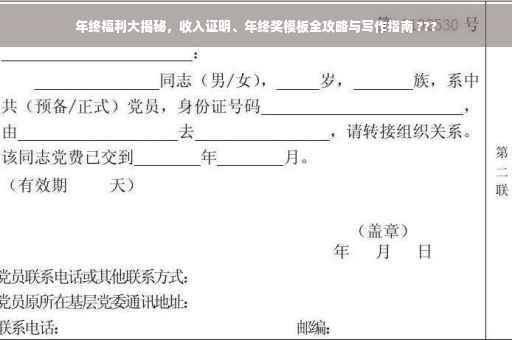 揭秘年终福利,全面解析收入证明与年终奖模板。了解如何撰写收入证明,掌握年终奖发放标准和方式。本文提供详细的模板示例,帮助您轻松完成相关手续,确保年终福利的顺利发放。阅读本文,让您对年终福利不再迷茫。