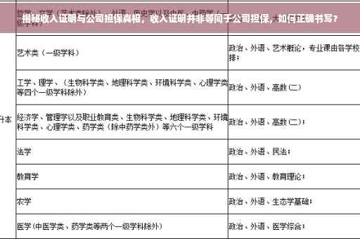 收入证明与公司担保是两个不同的概念,不能混为一谈,收入证明只是对个人收入状况的一种证明,而公司担保则需要承担具体的法律责任,在求职、贷款等场合提供收入证明时,个人应确保信息的真实性和准确性;在涉及公司担保时,双方应充分了解相关风险和责任,希望本文的解析能帮助您更好地了解收入证明与公司担保之间的关系。