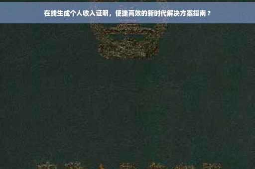 摘要:,,进入新时代,个人收入证明在线生成成为便捷高效的新解决方案。通过简单的操作,您可以在线快速生成个人收入证明。访问相关网站或应用程序,填写个人信息和收入详情,选择证明格式并预览。确认无误后,进行电子签名并提交申请。等待审核通过后,即可下载并打印个人收入证明。这种在线生成方式简化了流程,节省了时间,为现代生活带来便利。