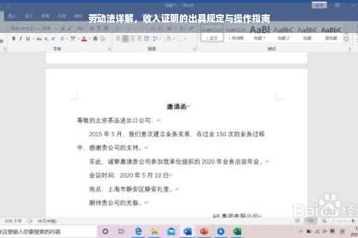 在当今社会,随着劳动法的深入实施,劳动者的权益保护日益受到社会的关注,收入证明作为劳动者在职场中不可或缺的重要文件,其出具和使用也变得越来越规范,本文将结合劳动法的相关规定,详细解读收入证明的出具流程,帮助广大劳动者更好地维护自身合法权益。