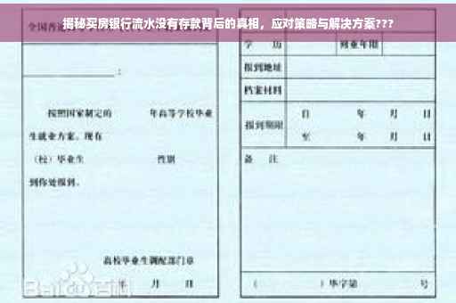 摘要:,,在购房过程中,有时会遇到银行流水没有存款的情况,这可能会影响贷款审批。背后的原因可能包括资金分散、短期资金周转问题等。对此,购房者可以采取一些策略,如提供其他证明资料、调整流水记录、咨询专业机构等,以改善银行流水状况,顺利获得房贷。购房者还需注意提前规划资金,确保流水记录良好。