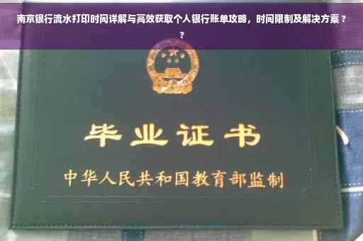 随着金融科技的飞速发展,银行业务日益便捷化、智能化,作为南京银行的尊贵客户,您可能经常需要打印银行流水账单来处理各种事务,本文为您详细介绍南京银行流水打印的时间、流程及相关注意事项,助您高效获取个人银行账单,更好地管理您的财务。