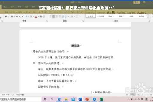 摘要:想要轻松在家导出银行流水账单?只需遵循简单步骤,即可轻松掌握。无需繁琐手续,只需登录银行官网或使用手机银行应用,进入账户明细页面,选择时间范围并导出流水账单。安全便捷,随时查看,轻松管理财务。自己在家就能轻松完成银行流水导出,省时省力!