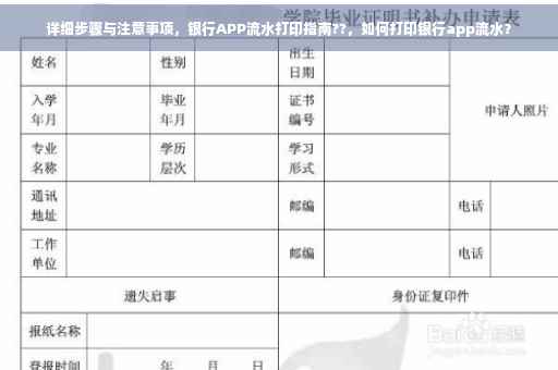本文详细介绍了如何通过银行APP打印流水,包括准备工作、操作步骤、注意事项以及常见问题解决方案,希望读者能够仔细阅读并理解本文内容,以便在实际操作中能够顺利完成银行流水打印,建议读者在使用过程中保持警惕,确保账户安全,避免泄露个人信息,如有更多疑问或需求,请及时咨询所属银行的客服人员。