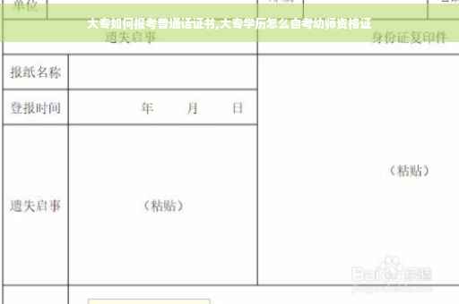 大专毕业自考幼师资格证在认定的时候,需要提供二级乙等及以上水平的普通话证,如果考生不是在户籍所在地报考,则还需要提供报考当地的人事证明或者是大学在读证明。