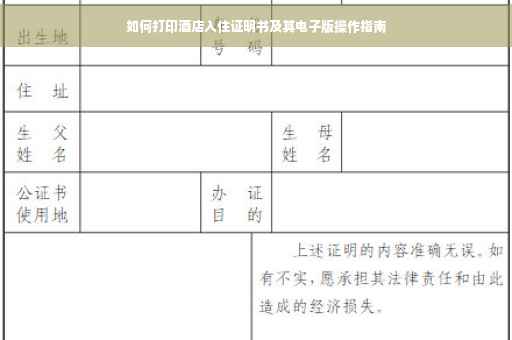 摘要:要打印酒店入住证明书,您可以通过访问酒店官方网站或相关预订平台获取电子版入住证明,然后使用打印机进行打印。具体步骤包括登录账户,找到入住证明文件,选择打印选项并完成打印。确保打印清晰,备份原件,以备不时之需。