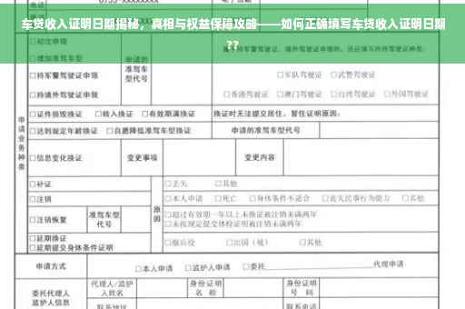 摘要:本文将探讨车贷收入证明日期的真相与权益保障问题。文章将简要介绍车贷收入证明日期的含义和重要性,揭示其背后的真相,包括一些常见的陷阱和注意事项。文章将重点强调个人权益的保障,包括如何正确填写车贷收入证明日期以及需要注意的细节。本文旨在帮助读者更好地了解车贷收入证明日期的相关知识,确保自身权益不受损害。