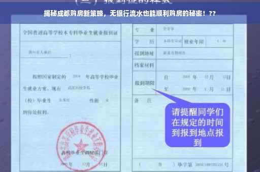摘要:成都购房新策略揭秘,即使无银行流水也能顺利购房。本文将探讨一些不为人知的秘密,包括一些解决方案和建议,以帮助购房者解决没有银行流水的问题。无论是缺乏流水还是其他因素,购房者都可以通过了解这些策略来更好地应对购房挑战。
