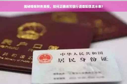 在当今社会,随着人们财务观念的转变,婚姻中的财务管理逐渐成为人们关注的焦点,作为婚姻财务调查的一种方式,银行调查配偶流水表逐渐进入人们的视野,本文将详细介绍银行调查配偶流水表的相关知识,帮助大家了解其在婚姻财务调查中的重要性。