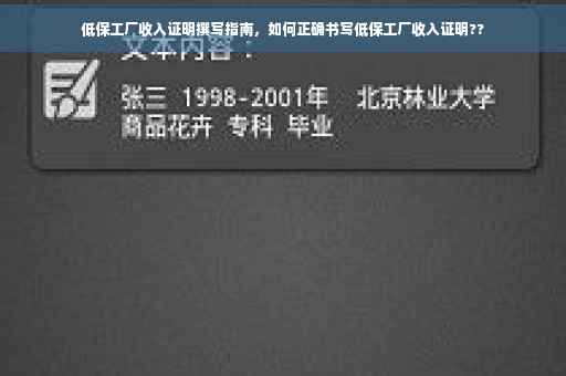 本文旨在为您提供一份详细的低保工厂收入证明撰写指南,包括背景、步骤、要点、模板及注意事项,希望本文能为您的生活和工作带来便利,如有疑问,请咨询相关法律专业人士。