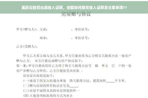 收入证明是证明个人经济收入状况的重要文件,通常用于办理贷款、信用卡申请、房屋租赁、签证申请等场合,在离职后,有时这些证明仍然必不可少,了解离职后是否能出具收入证明显得尤为重要。