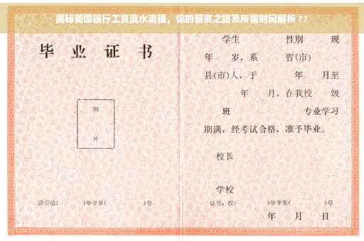 摘要:本文将为你揭秘美国银行的工资流水流程,介绍你的薪资之旅。从雇主发放薪资到银行接收并处理,整个过程涉及多个环节。本文将详细阐述这一过程,并解答去美国银行工资流水要多久的问题。通过了解银行工资流水流程,你可以更好地管理个人财务,合理规划未来。