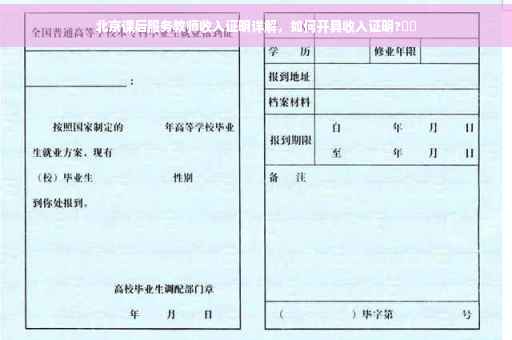 摘要:本文将详细介绍北京课后服务教师的收入证明相关事宜。包括收入证明的内容、开具流程、所需材料等方面。想要了解如何开具北京课后服务教师收入证明的朋友们,本文将为您提供有用的指导和建议。通过本文,您将能够了解如何快速、准确地开具收入证明,以便满足您的需求。