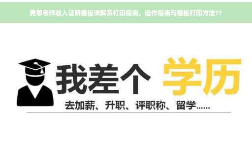 摘要:本文将详细介绍雅思老师收入证明模板的内容和使用方法,包括模板的详解和打印指南。读者将了解如何获取模板,如何填写相关信息以及注意事项等。本文旨在帮助需要打印雅思老师收入证明的人快速掌握相关技巧,确保顺利打印出符合要求的收入证明。