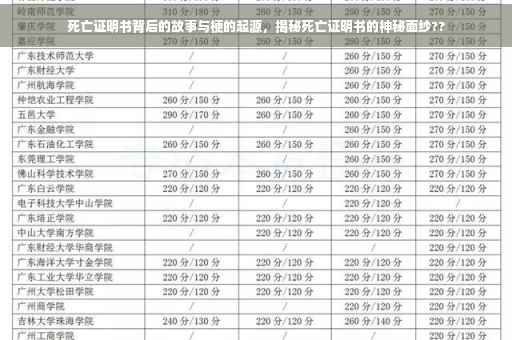摘要:死亡证明书是一种证明人死亡事实的官方文件。其背后的故事和梗的起源多种多样。这篇文章将为您揭示死亡证明书的重要性,探索其背后的故事,以及梗的起源。通过了解死亡证明书的含义和用途,我们能更好地理解人类生命的终结和死亡相关的文化、社会和心理现象。