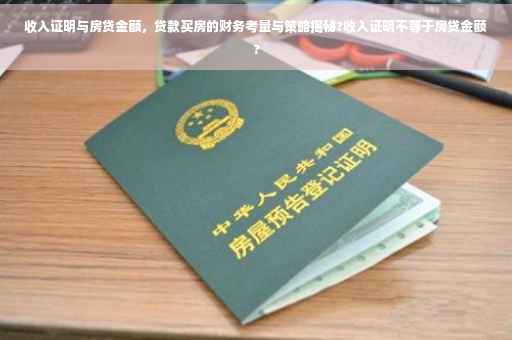 在现代社会,随着房价的不断上涨,越来越多的人选择通过贷款购买房屋,在这个过程中,收入证明成为了申请房贷的重要一环,收入证明不仅关系到贷款额度,更是银行评估借款人还款能力的重要依据,本文将详细探讨收入证明与房贷金额之间的关系,帮助大家更好地理解贷款买房的财务考量与策略。