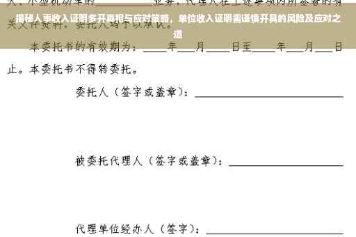 摘要:收入证明是证明个人经济能力的重要依据,但人事是否可以多开收入证明呢?本文揭示了真相并探讨了风险应对之策。单位可以多开收入证明,但需注意防范风险,确保证明的真实性和合法性。个人需谨慎使用,避免因滥用而产生不良后果。