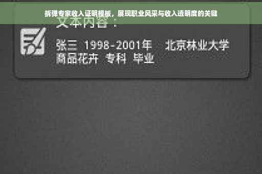 拆弹工作是一项高风险、高技能的职业,拆弹专家需要经过严格的培训和考核,具备丰富的实践经验和专业技能,在收入证明模板中,可以通过以下几个方面展示拆弹工作的职业风采: