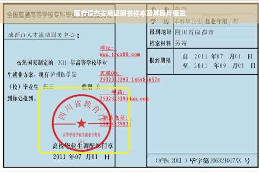 摘要:本证明书是关于医疗设备安装的证明文件样本,包括医疗设备名称、型号、规格、安装地点等基本信息,以及安装过程、验收结果和签字盖章等内容。该证明书旨在确认医疗设备已经成功安装并符合相关标准和要求,以确保医疗设备能够正常运行并发挥应有的治疗作用。附带的图片展示了医疗设备安装证明书的外观和格式。