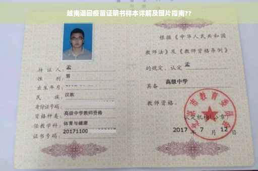 摘要:本文将详细介绍越南退回的疫苗证明书样本,包括样本图片。内容涵盖证书的基本信息、疫苗种类、接种日期等关键信息,同时解读了越南退回疫苗证明书的含义和重要性。旨在为读者提供清晰的指导,了解并正确使用疫苗证明书。