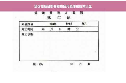 摘要:本文介绍了急诊康复证明书模板的图片及详细使用指南,提供了全面的急诊康复证明书模板图片大全。通过本文,用户可以方便地获取模板图片,并了解如何使用这些模板来开具急诊康复证明书。文章旨在帮助用户快速、准确地完成急诊康复证明书的制作,以便为患者提供及时的康复证明服务。