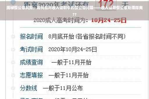 在现代社会中,收入证明在求职、贷款、申请福利等方面扮演着重要角色,一些不法分子却利用假公章伪造收入证明,这不仅侵害了用人单位的合法权益,也对个人信用和社会秩序造成严重危害,本文将深入探讨收入证明中的假公章问题,并为您提供应对策略。