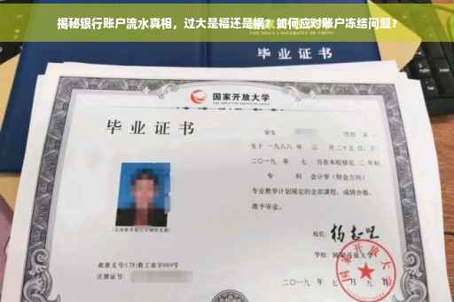 摘要:,,银行账户流水过大可能引发冻结,真相背后涉及多种因素。有时流水大可能是好事,如收入证明充足;但有时也可能因不明原因的资金流动而引发银行警觉。若遭遇冻结,解除方法包括联系银行客服了解详情、提供必要证明材料、调整交易习惯等。务必谨慎处理,确保资金安全。