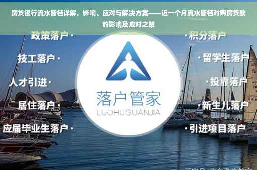 摘要:银行流水是房贷审批的重要依据,出现断档会影响贷款申请。如果银行流水断了近一个月,可能会对房贷申请造成一定困难。面对这种情况,借款人可以通过其他证明收入的方式,如提供其他银行流水、工资单等,来弥补断档影响。咨询银行或金融机构的专业意见也是明智之举。针对银行流水断档问题,提前规划并采取措施,有助于顺利获得房贷。