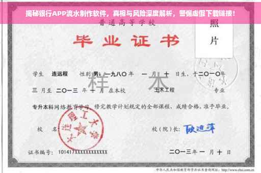 摘要:本文将揭示银行APP流水制作软件的真相与潜在风险。通过深入了解这类软件的运作机制,剖析其安全性和可靠性问题。同时提醒公众,下载和使用此类软件存在极大风险,可能导致个人信息泄露、资金安全受到威胁。呼吁广大用户谨慎选择,避免陷入相关风险。