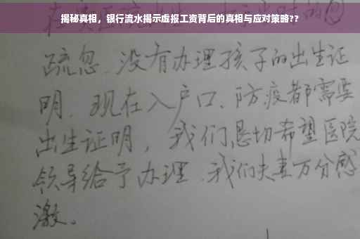 摘要:本文将揭示虚报工资背后的银行流水真相,探讨如何通过银行流水证明工资收入。对于因虚报工资需要提供银行流水的情况,提供应对策略和建议。帮助读者了解真相,避免不必要的麻烦。