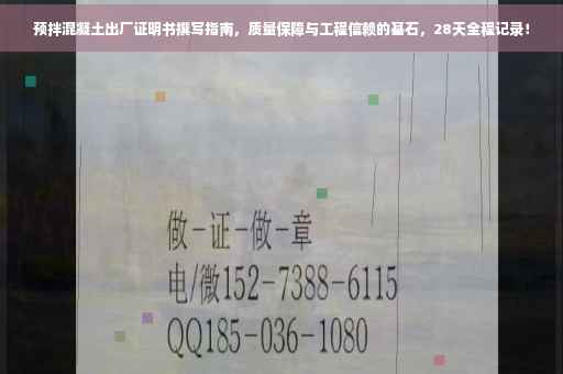 作为一名自媒体作者,我深知建筑材料对于建筑工程的重要性,预拌混凝土作为现代建筑领域中不可或缺的原材料,其质量直接关系到工程的安全性和稳定性,本文将详细介绍预拌混凝土的出厂证明书,阐述其重要性、内容要点以及作用,帮助大家更好地了解这一关键文件。