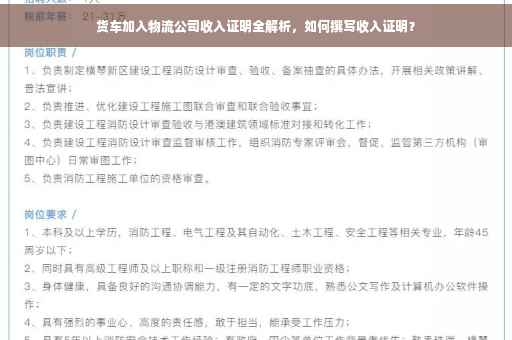 摘要:本篇文章将详细介绍货车加入物流公司后的收入证明相关事宜。内容包括如何撰写收入证明、需要包含哪些关键信息以及注意事项等。对于想要了解货车加入物流公司收入证明流程和格式的读者,本文提供了简洁明了指导和建议。